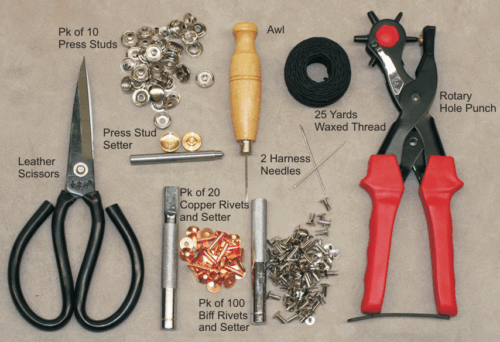 Kits made up from Leathercraft Tools. Includes all inclusive Tool Kits. Stitching Kits, Belt Making Kits and Leather Repair Kits