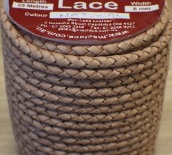 Braided Leather Cord 6 mm X 25 M Natural