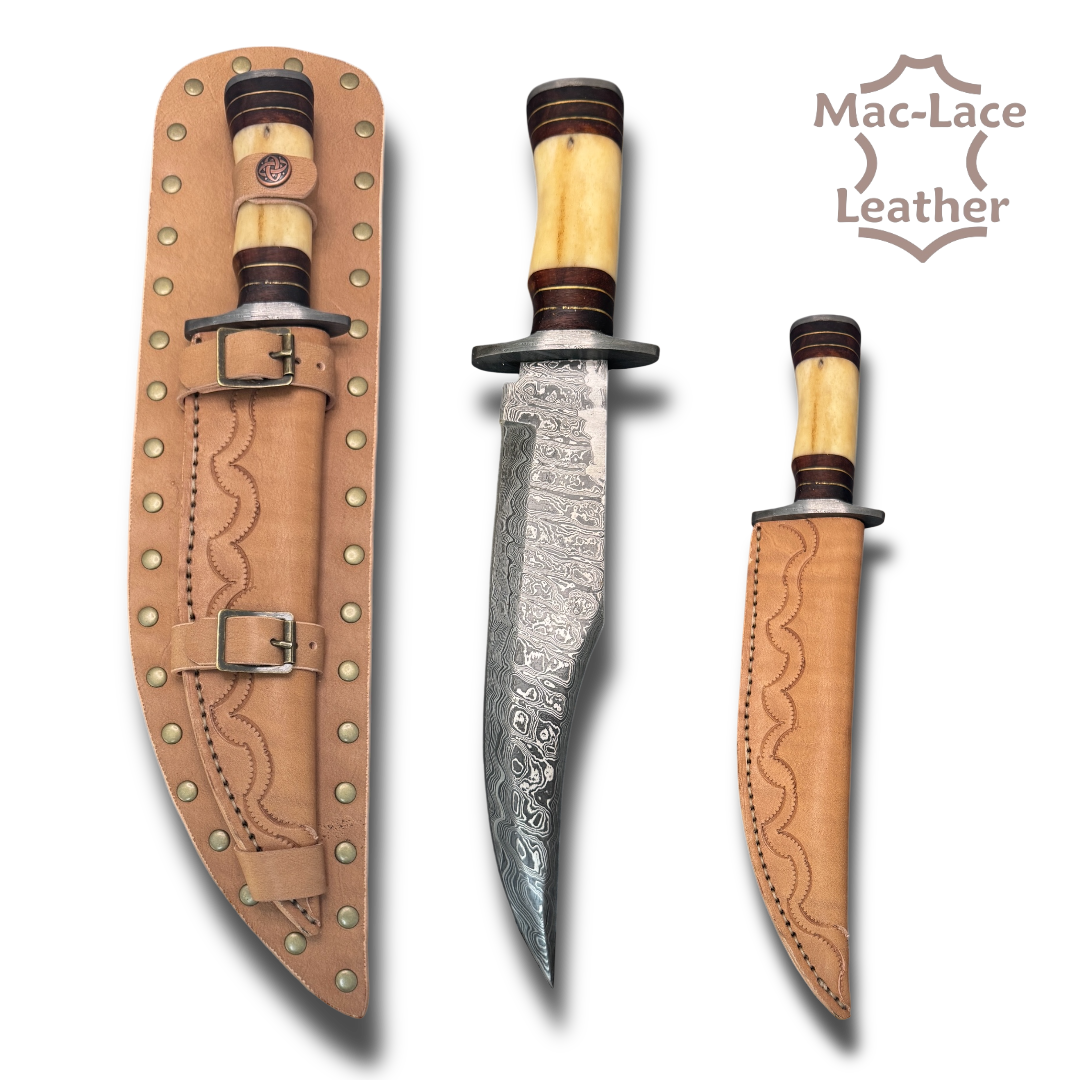 The 13.5″Damascus Australian Handmade Sheath is a remarkable and powerful tool that embodies a rich heritage of craftsmanship and functionality. This iconic knife design has been revered for centuries, known for its formidable strength and versatility. The blade of the Bowie Knife measures an impressive 16 inches in length, showcasing a robust and razor-sharp edge. It is meticulously forged from high-quality stainless steel, ensuring exceptional durability and resistance to corrosion. The blade’s design features a clip point, characterised by its concave shape and a false edge on the back, adding to its overall effectiveness and aesthetic appeal.