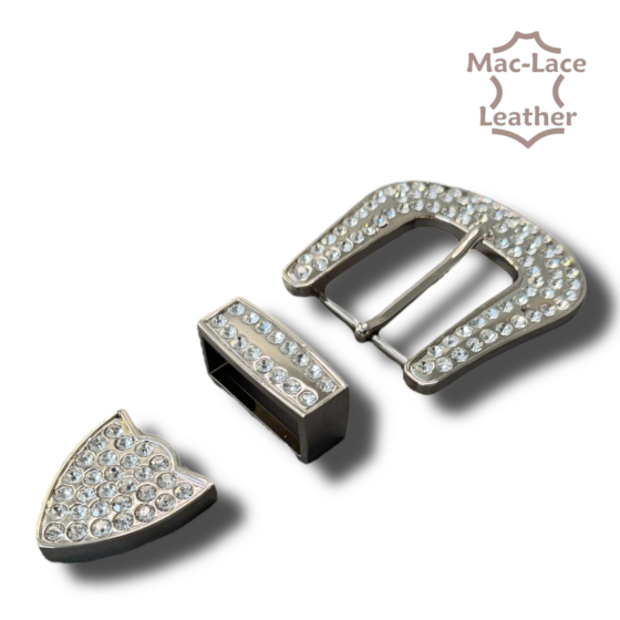 The 38mm 3-Piece 3-Piece 38mm Buckle Brushed-Nickel is a stylish and sought-after accessory that adds a touch of sophistication to country-style belts. This buckle, aptly named “3-piece” due to its composition of three distinct parts—the Tip, Keeper, and Buckle—embodies both functionality and fashion. Crafted with meticulous attention to detail, this buckle showcases a sleek and elegant design.