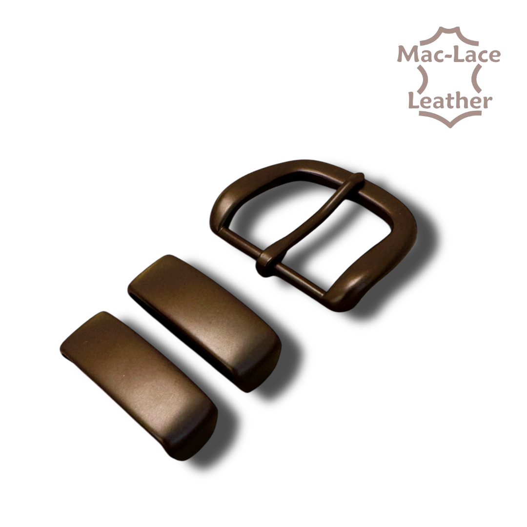 Introducing our 32mm Premium Mocha Buckle with Double Keepers, a must-have accessory for leather craftsmen and belt enthusiasts seeking a perfect blend of style and functionality. Designed specifically for leather belt blanks, this buckle set is a game-changer that will elevate your belt-making projects to new heights. Crafted with meticulous attention to detail, our buckle set is made from high-quality nickel, ensuring durability, longevity, and resistance to tarnish. The sleek and lustrous Brown finish adds a touch of sophistication to your belt creations, making them stand out with a refined and professional appearance. The set includes a stylish buckle and two matching keepers, providing a complete solution for securing and enhancing your leather belts. The 32mm size is versatile and suitable for various belt widths, allowing you to create belts that are both stylish and comfortable to wear.