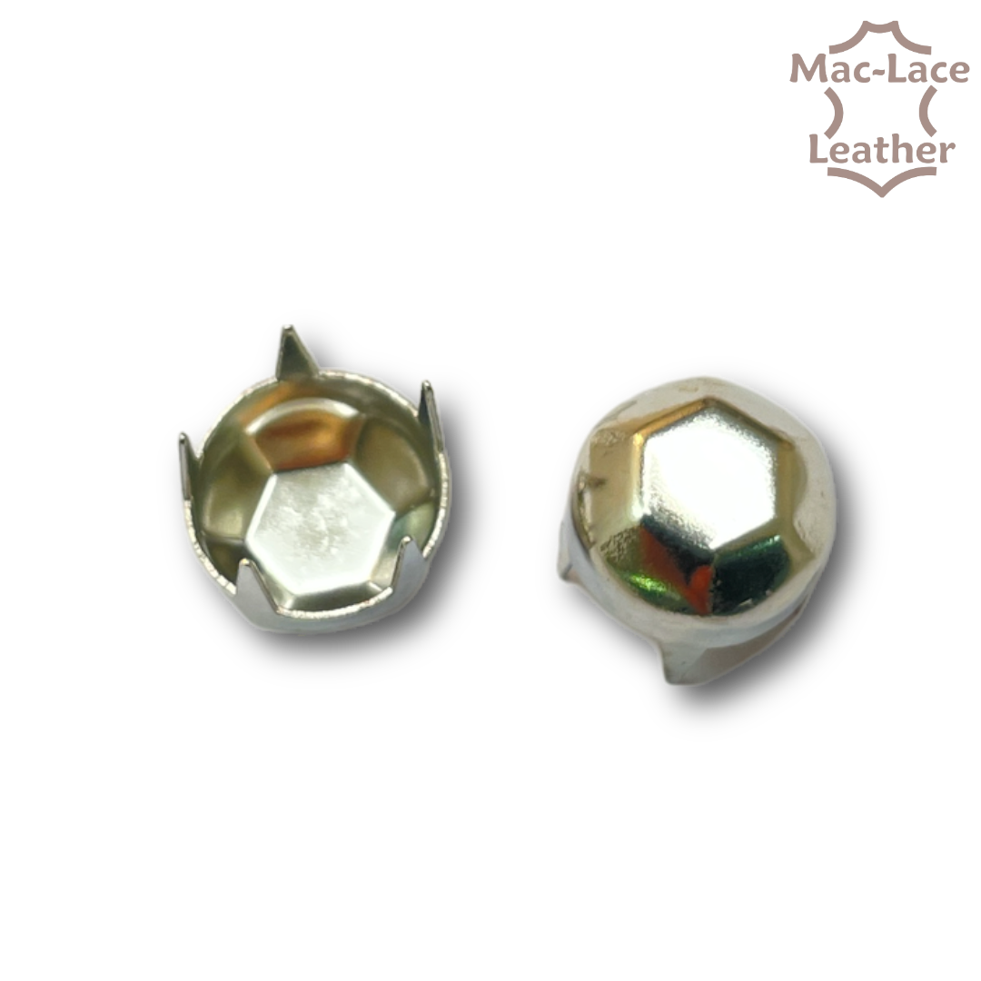 The six-sided design of these nickel studs adds an interesting visual element to any leathercraft project. They can be used alone or in combination with other types of studs and hardware to create intricate and eye-catching designs on leather items. These studs are particularly versatile due to their small size, making them suitable for use in a variety of leathercraft applications.