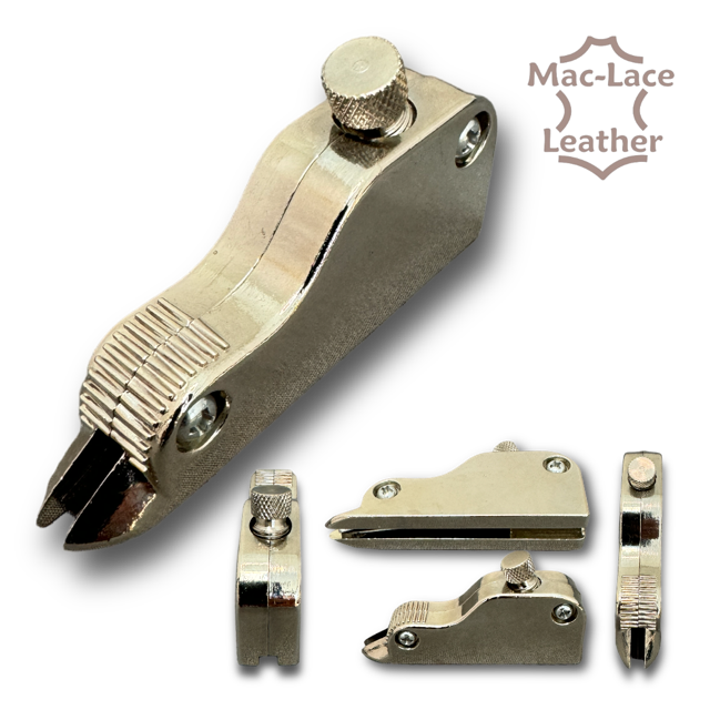 This adjustable V Gouge Tool is used to cut a “V” shapes groove in leather. The depth of the V is adjustable. Use this tool to make it easier to fold thick leather – so you take a V groove along the inside of the fold line. You can also use the tool to make decorative pattern in the leather.