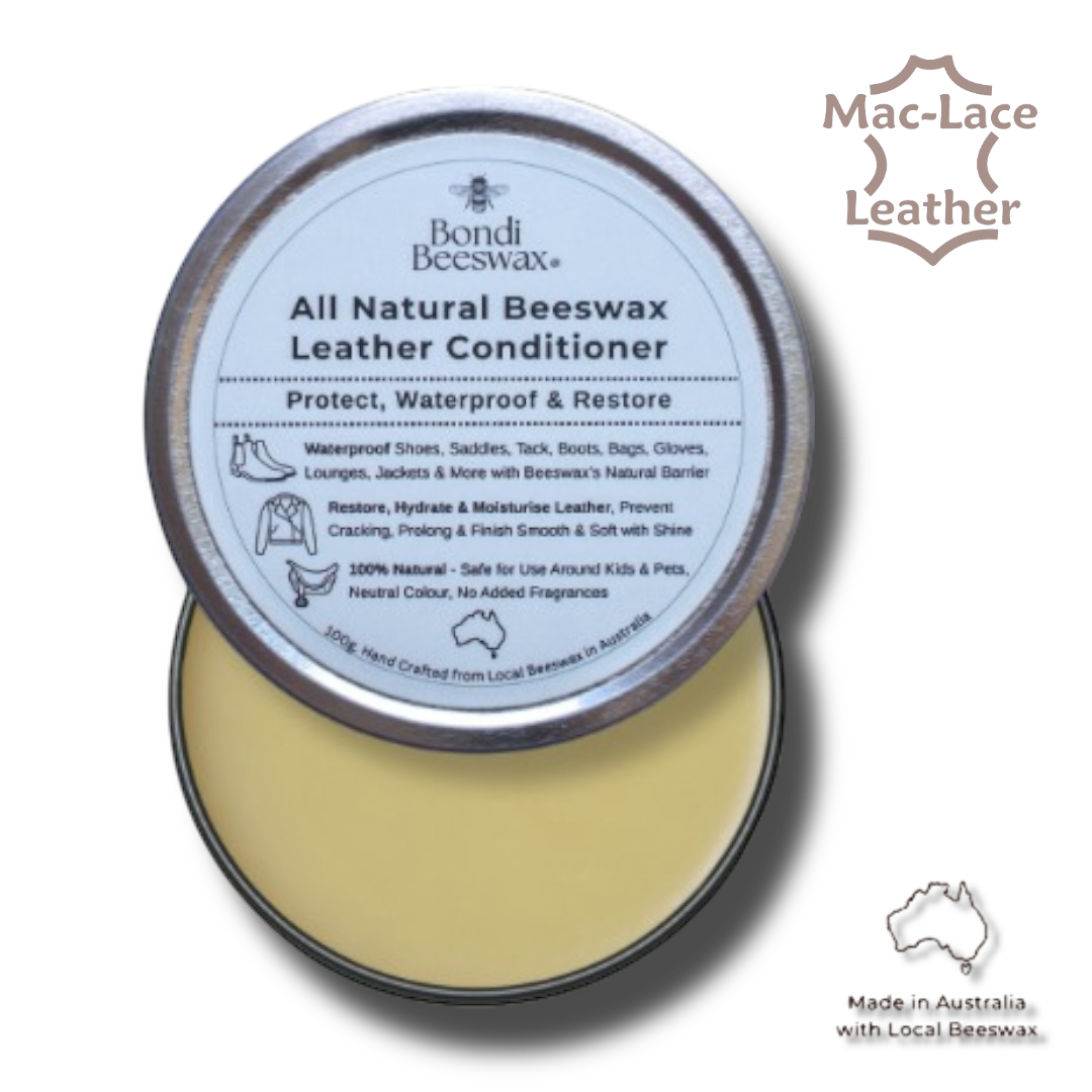 Give your leather the care it deserves with this trusted natural beeswax leather conditioner. Made the traditional way using local Australian beeswax and food-grade natural oils, this formula nourishes, protects, and waterproofs leather without synthetic chemicals.