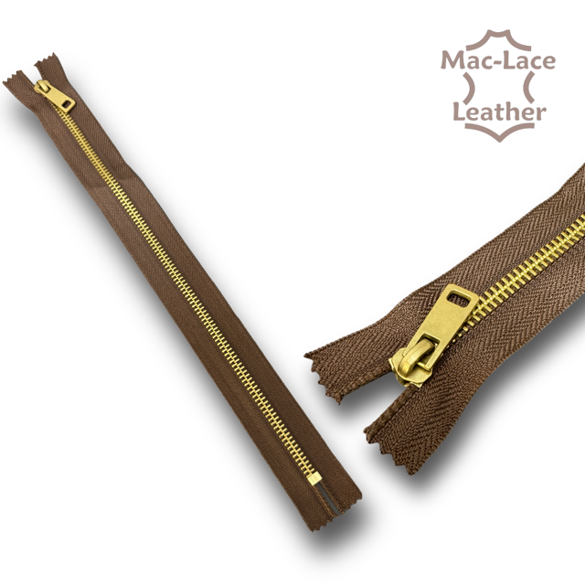 Our zippers are made of high quality nylon, brass teeth and metal zipper pull, lightweight but durable. Standard black and brown colour that matches any leather or material.