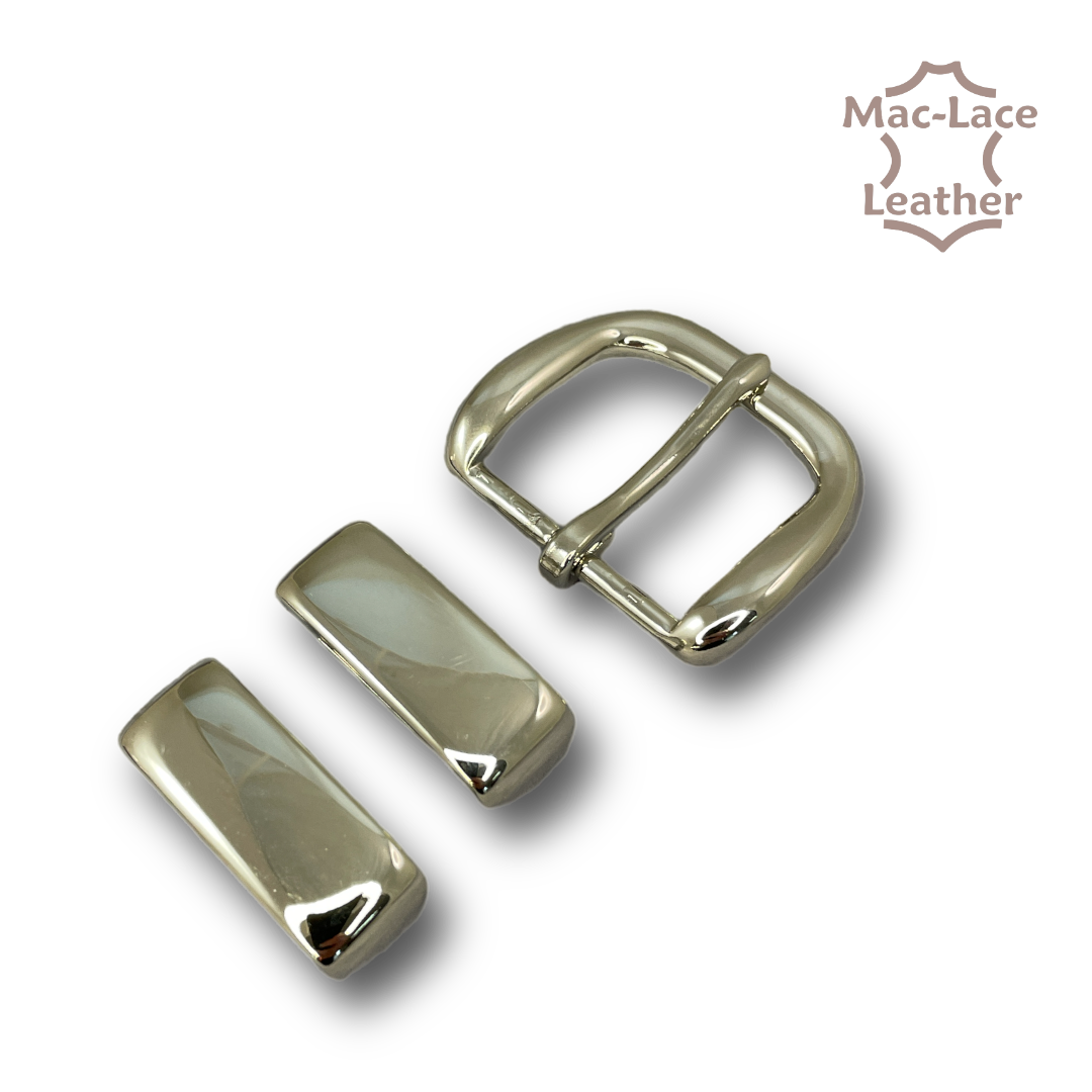 Introducing our exceptional Buckle Set with Two Keepers Nickel 32mm, a must-have accessory for leather craftsmen and belt enthusiasts seeking a perfect blend of style and functionality. Designed specifically for leather belt blanks, this buckle set is a game-changer that will elevate your belt-making projects to new heights. Crafted with meticulous attention to detail, our buckle set is made from high-quality nickel, ensuring durability, longevity, and resistance to tarnish. The sleek and lustrous nickel finish adds a touch of sophistication to your belt creations, making them stand out with a refined and professional appearance. The set includes a stylish buckle and two matching keepers, providing a complete solution for securing and enhancing your leather belts. The 32mm size is versatile and suitable for various belt widths, allowing you to create belts that are both stylish and comfortable to wear. Shiny nickel buckle with 2 keepers to fit 32mm belt straps.