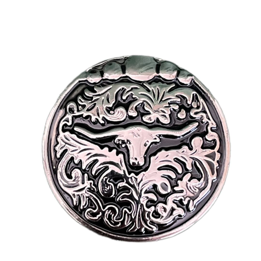 Longhorn concho with screw back fitting. Size 38 mm round