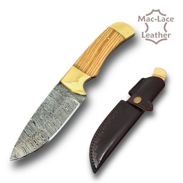 Beautifully Crafted Double Bolsters skinning knife with Damascus Blade and handmade Sheath