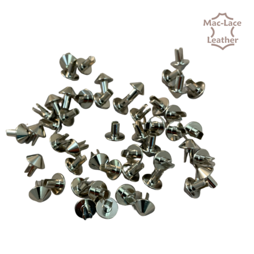2-Piece Speedie Rivet with a domed top and domed base – so when they are set the rivet looks the same from both sides of the leather. Cap size is 5mm – Stem Length 5mm… always allow 1-2 mm for the rivets to compress together.