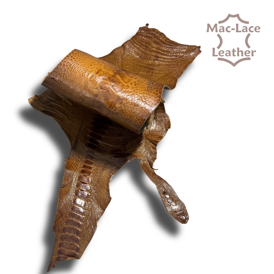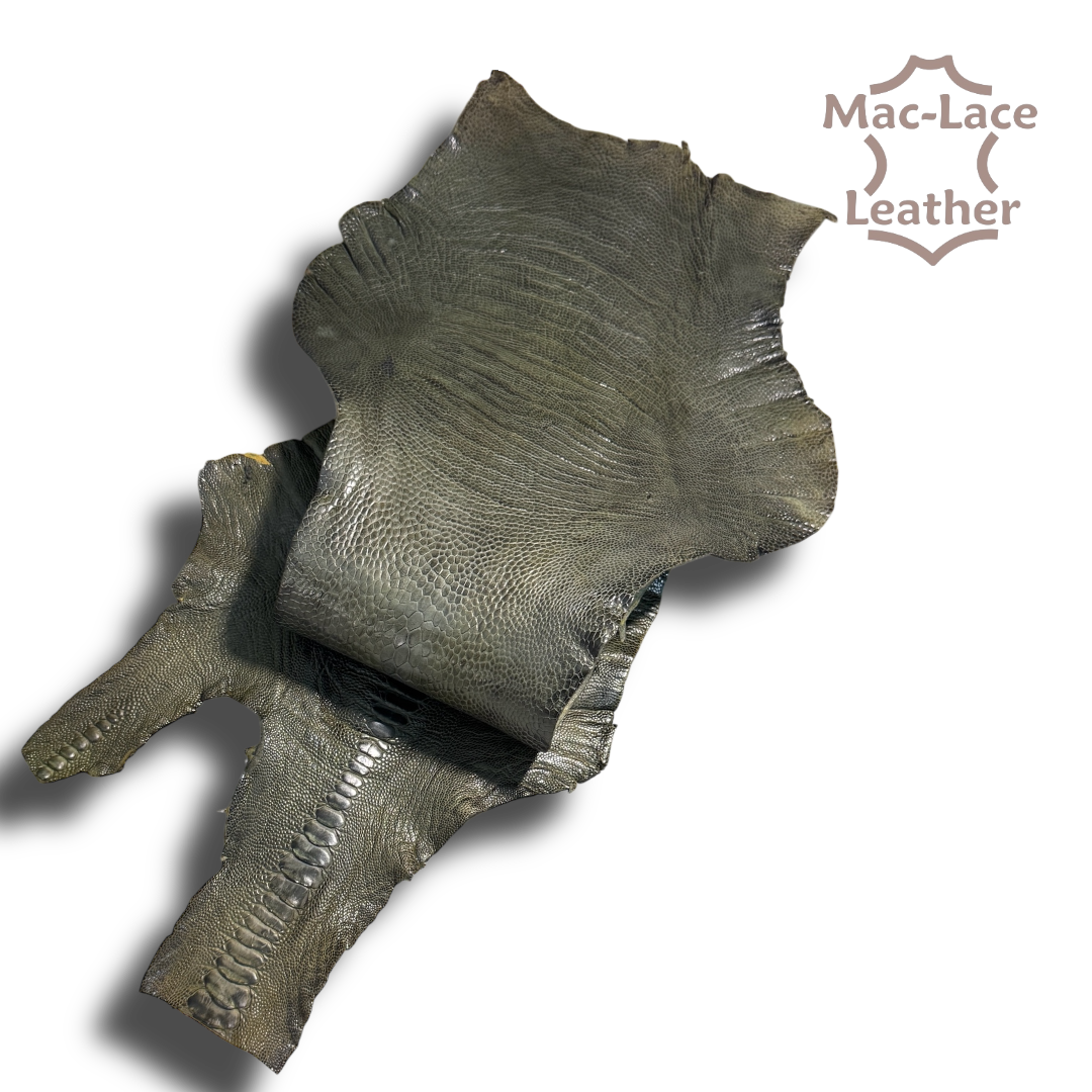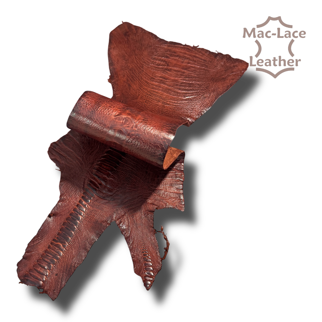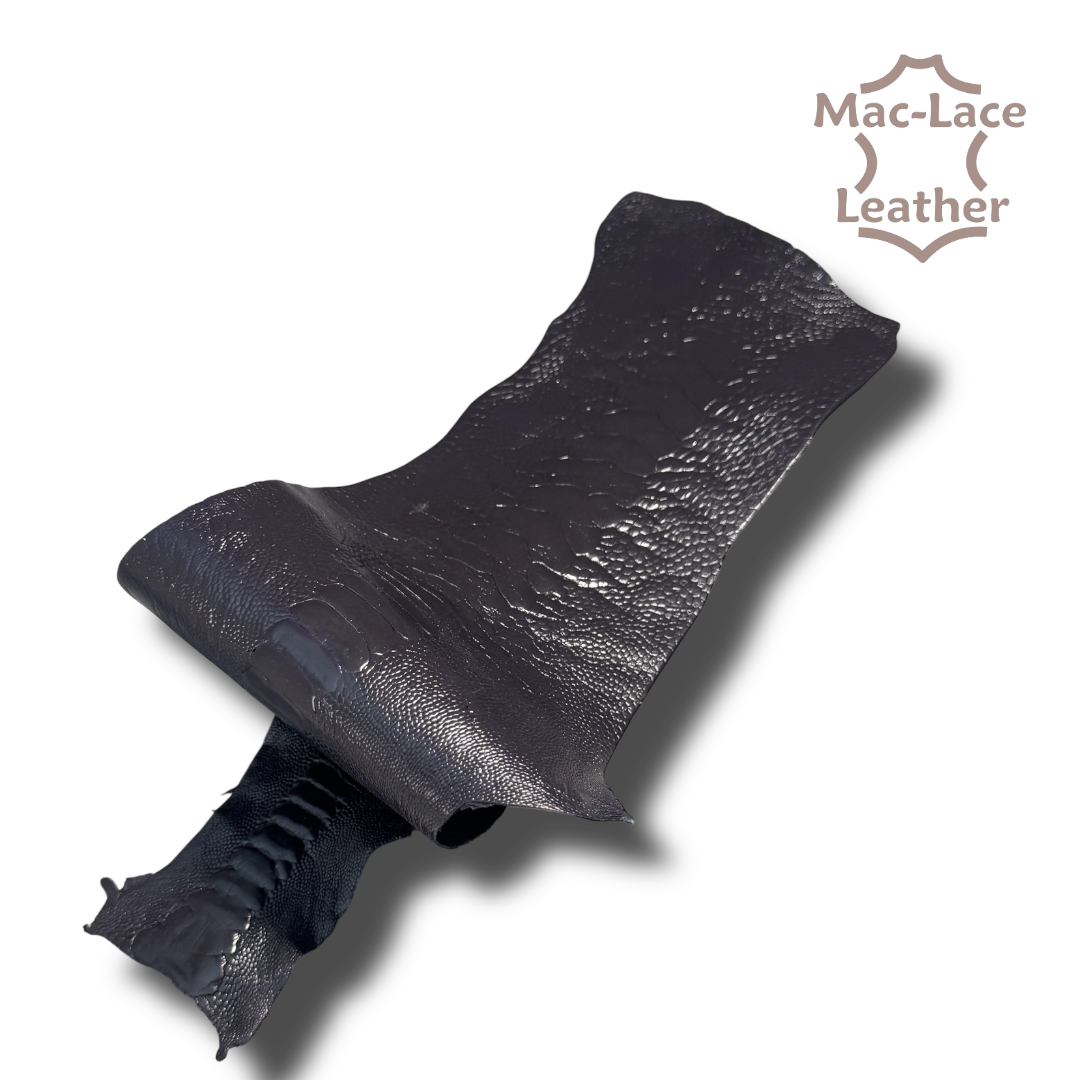 Recognised for their natural scale pattern and striking texture, ostrich leg leather adds character and premium appeal to any leather project. Each skin features unique markings that make every piece slightly different, giving your finished product a truly one-of-a-kind look.