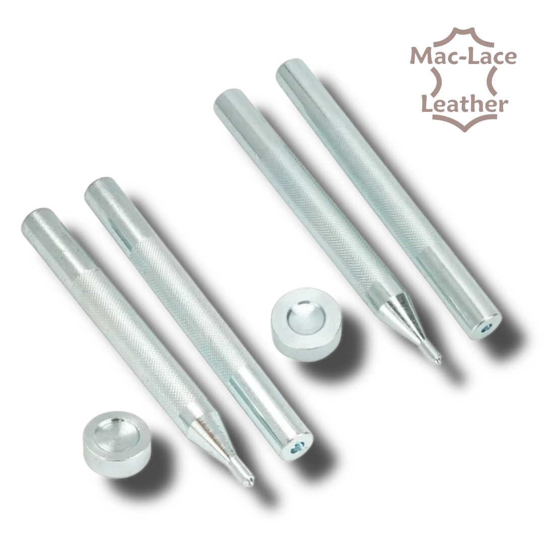 Built for accuracy and durability, this 3-piece tool set is suitable for installing 10mm (3/8″) and 12.5mm (1/2″) single cap glove snaps, making it a must-have for leatherworkers, repair professionals, and serious DIY makers.