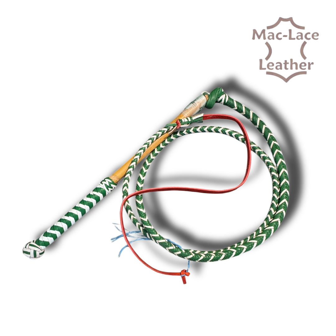 The Old School Australian 16-Plait Twin-Colour Whip in Jade and White is a premium handcrafted whip that reflects the true heritage of Australian whip making. Made with precision and traditional craftsmanship, this 6-foot whip is both visually stunning and built for performance.