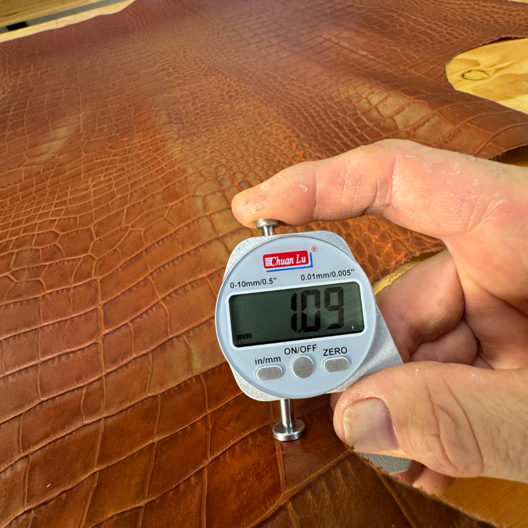 The unique Lizard Predator Tan 0.8-1.2mm print pattern on the leather adds a distinctive touch to the finished product, giving it a sophisticated and exotic look. The tan colour of the leather is versatile and can complement a wide range of design styles, making it a popular choice among designers and craftsmen. In terms of quality, this cow leather is known for its durability and strength, making it suitable for products that require resilience and longevity. Whether used for everyday bags or special occasion accessories, this leather can withstand regular use and maintain its appearance over time.