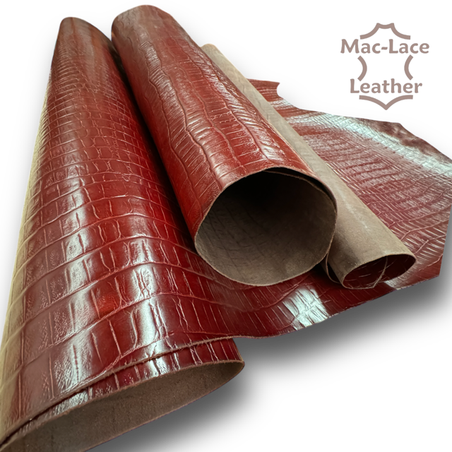 This premium crocodile print leather is ideal for creating standout leathercraft projects, handbags, and decorative items. Its rich mahogany tone and exotic texture bring sophistication and style to any creation.