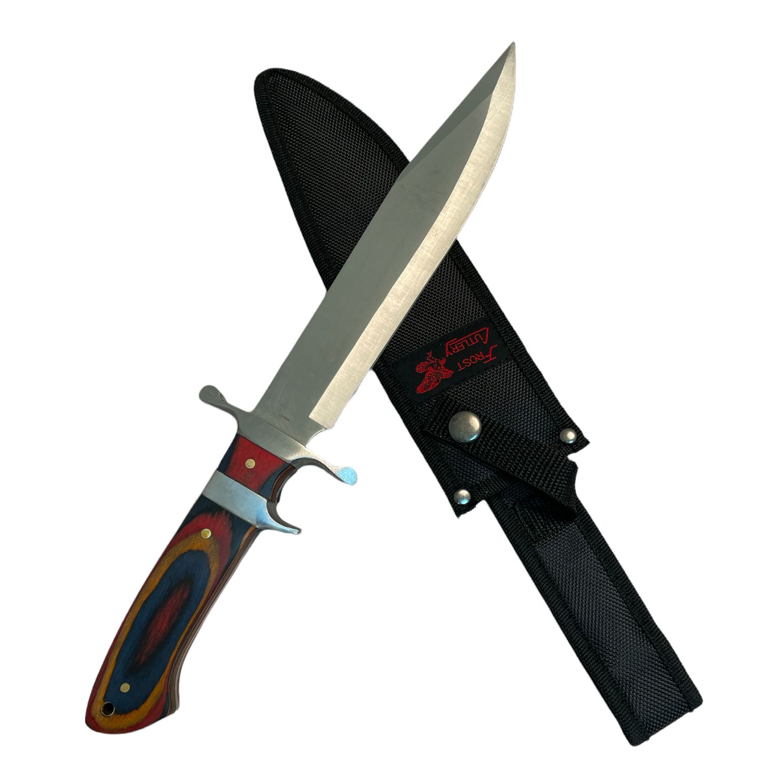 Full tang. Lanyard hole. Black nylon belt sheath.