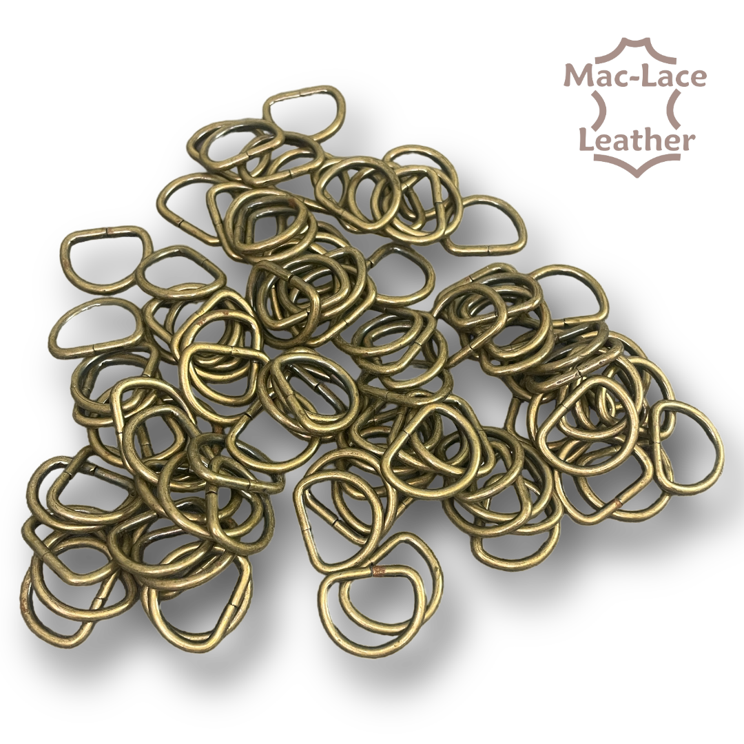 The Non-Welded 16mm Antique D-Rings in a pack of 100 are essential hardware accessories that provide secure attachment and organisation in various applications. Designed with durability and convenience in mind, these D-rings offer a reliable solution for connecting straps, belts, or other materials. Constructed with high-quality materials, these D-rings are built to withstand regular use and offer long-lasting performance These non welded craft rings are suitable for many leathercraft projects – use them to attach bag straps on handbags. Made from steel then the colour is plated on. 3 colours available – Nickel, Gold and Antique.