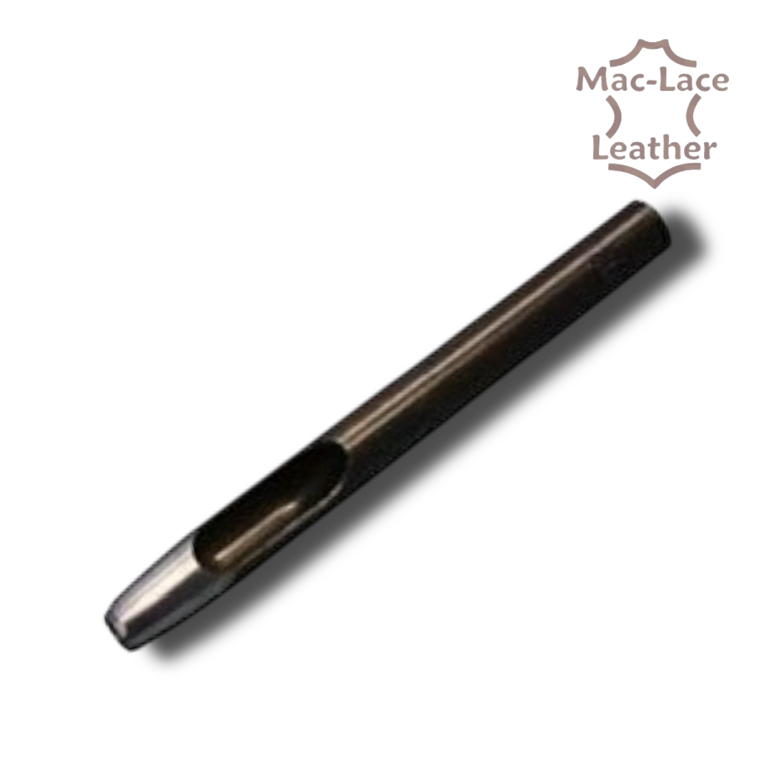 Quality oval hole punch made in Japan. Use this tool to produce oval shaped holes in leather. Oval holes are used on leather belts and straps so the buckle tongue sits better.