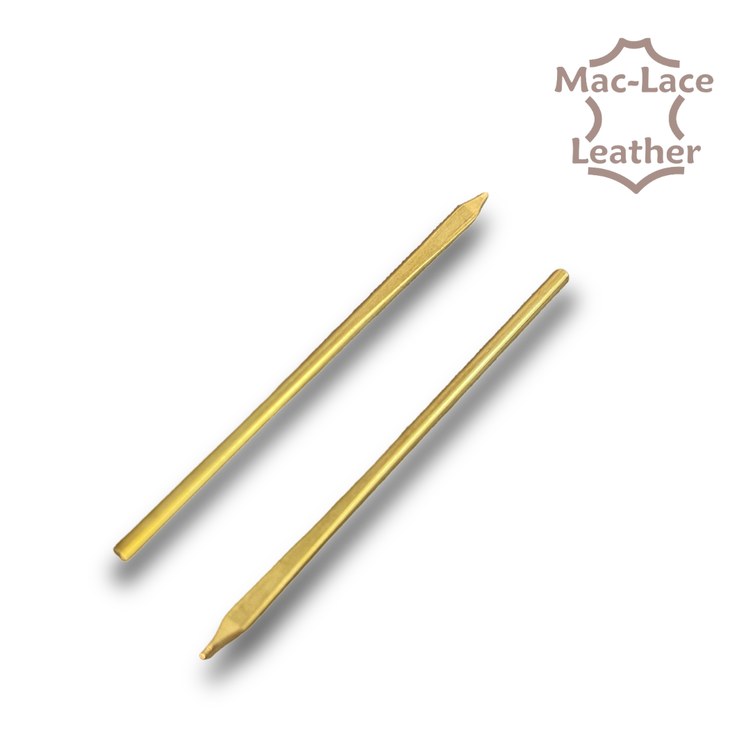 The Permalok needle is a brass needle that features a unique design with a reverse thread at one end. This specialised needle is specifically crafted for lacing tasks and is particularly useful for lacing projects that require lace of approximately 3 to 4.7 mm in width. Crafted from durable brass, the Permalok needle offers longevity and strength, ensuring it can withstand the demands of various lacing projects. The reverse thread at one end of the needle is a standout feature that sets it apart from conventional needles. This reverse thread is designed to securely grip the lace, preventing it from slipping or coming undone during the lacing process. The reverse thread effectively locks the lace in place, providing stability and reliability.