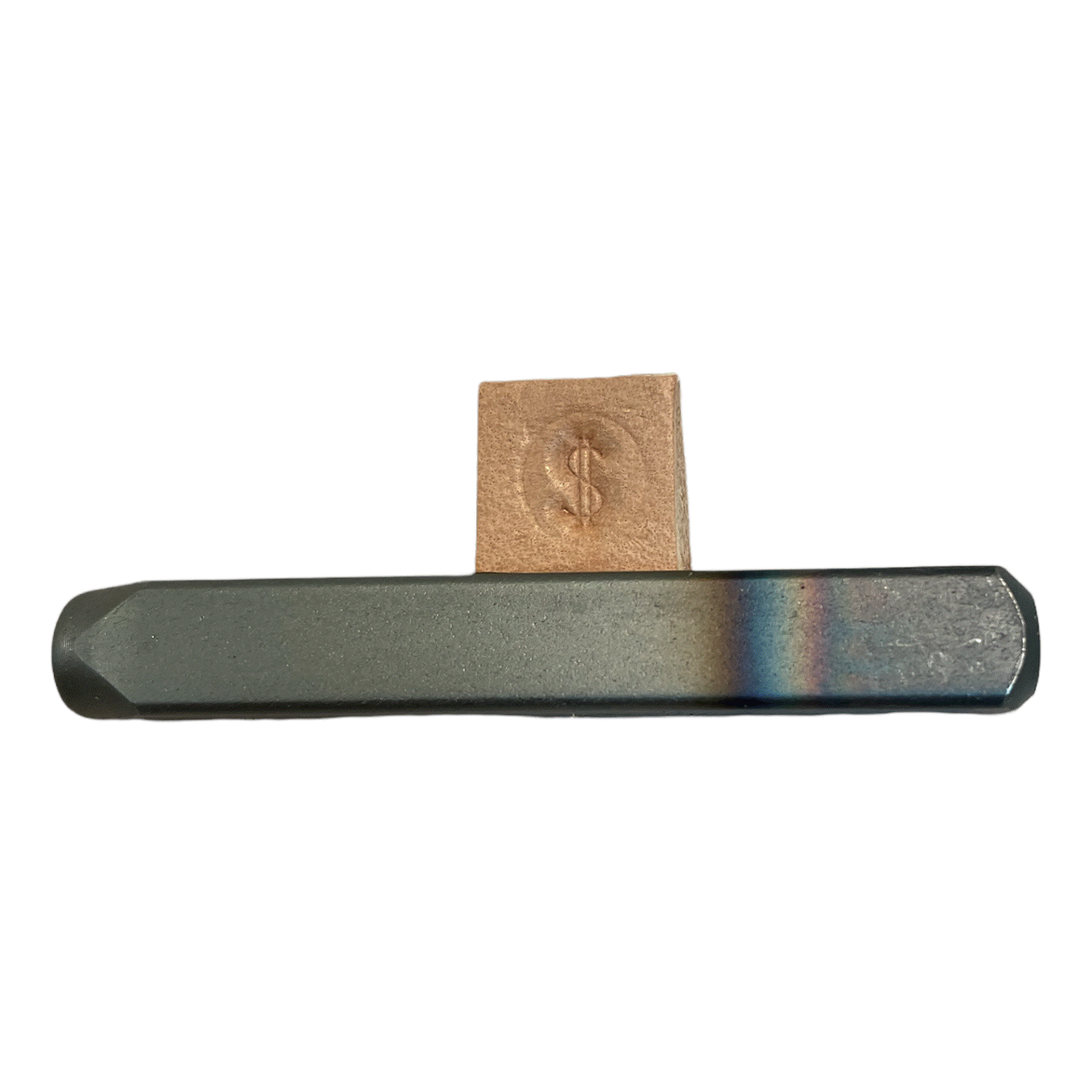 This 6 mm stamping tool does not need a handle. To use wet veg tanned leather then strike firmly with a mallet and the stamp will leave a nice imprint in the leather.