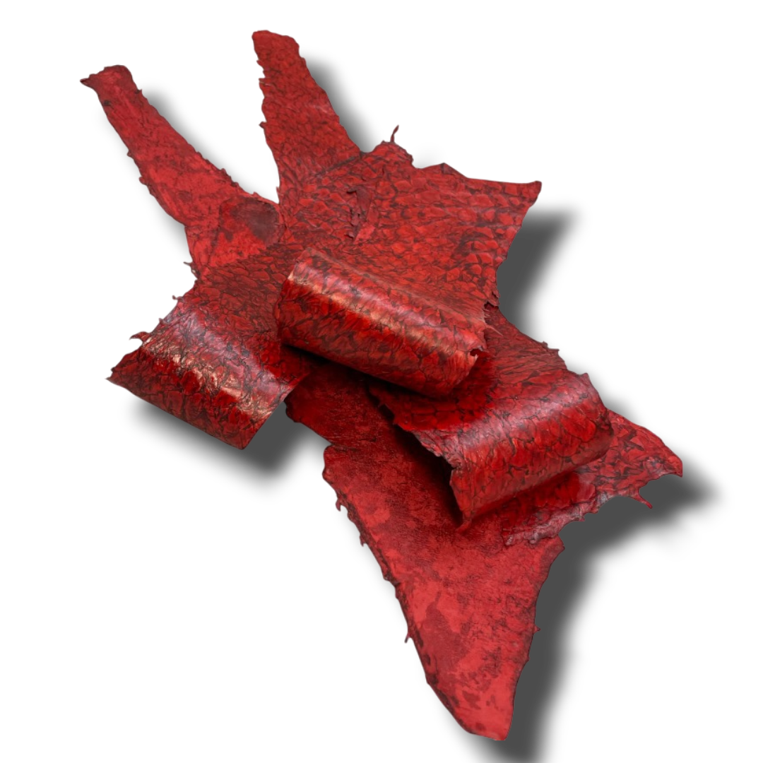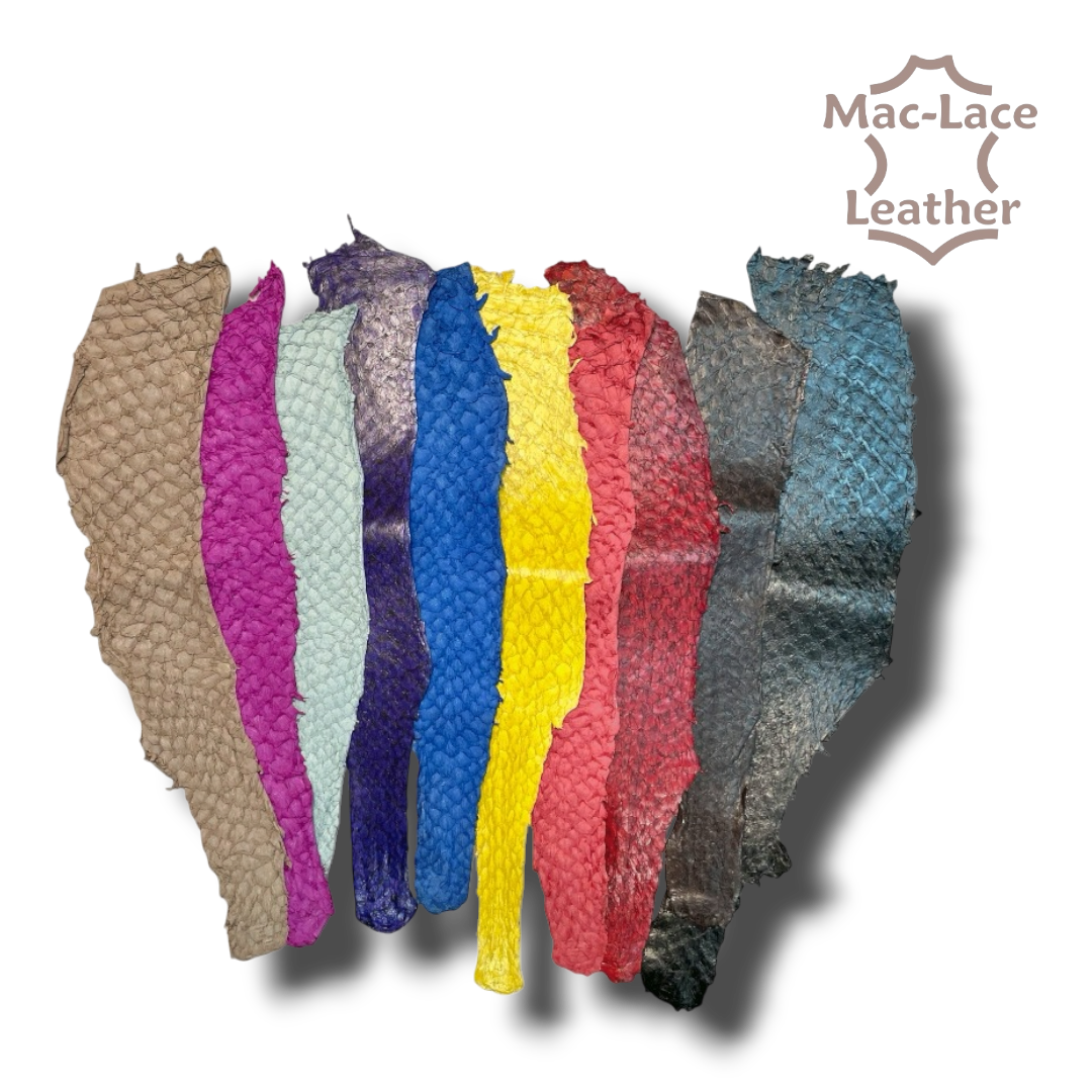 Carp Fish Skins are an exceptional and sustainable leather option, crafted from the by-products of the fishing industry and transformed into premium-quality material . Known for their distinctive texture and durability, carp skin leathers are available in both suede and glazed finishes, offering versatility for a wide range of applications.