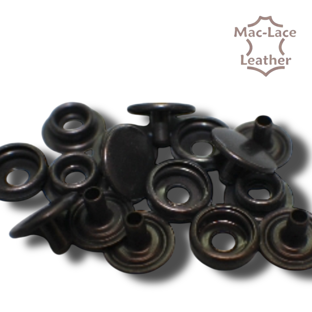 Regular press studs used for leather about 3.5mm thick. 15 mm wide cap and 7 mm long stem. Commonly used for belts.