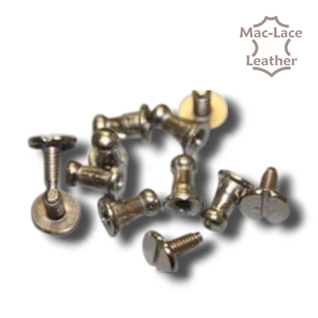 Reliable nickel screw posts designed for secure leather fastening—perfect alternative to press studs.