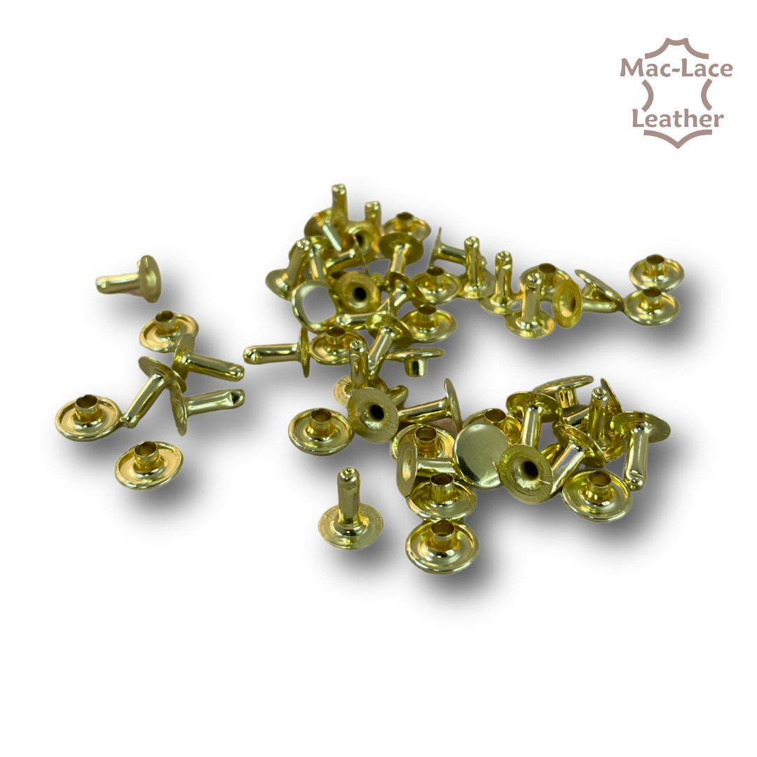 These specific rivets are made of brass, which is a durable and corrosion-resistant material that is often used for decorative purposes. The pack contains 100 rivets, which is a convenient quantity for larger leathercraft projects or for those who need to use rivets frequently.