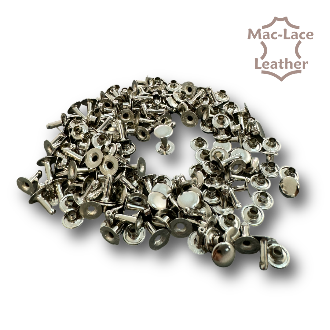Suitable for joining 2 pieces of leather with a total thickness of 7-8 mm. Use MAC848 Rivet Setter to set the rivets. (9mm cap)