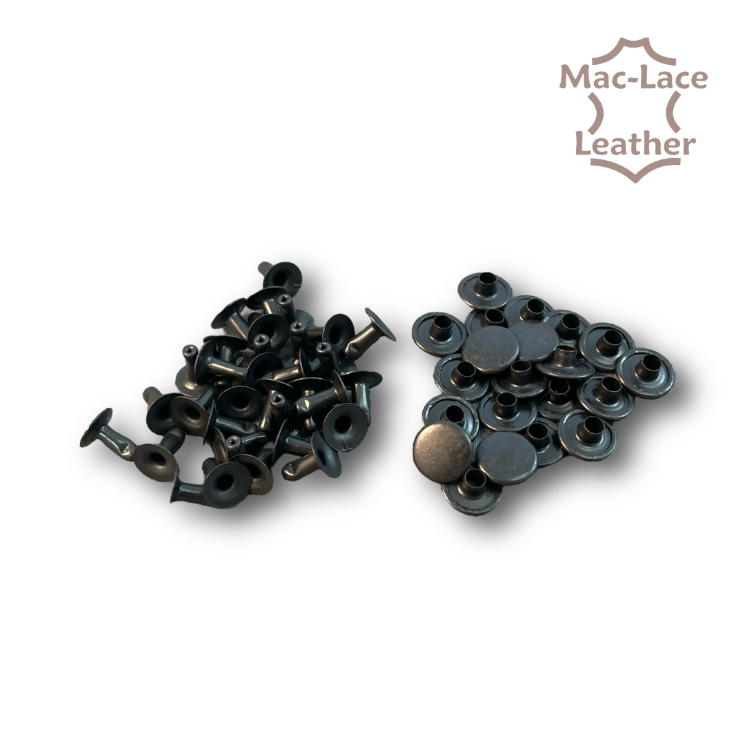 Suitable for joining 2 pieces of leather with a total thickness of 6-7 mm. Use MAC848 Rivet Setter to set the rivets. (9mm cap)