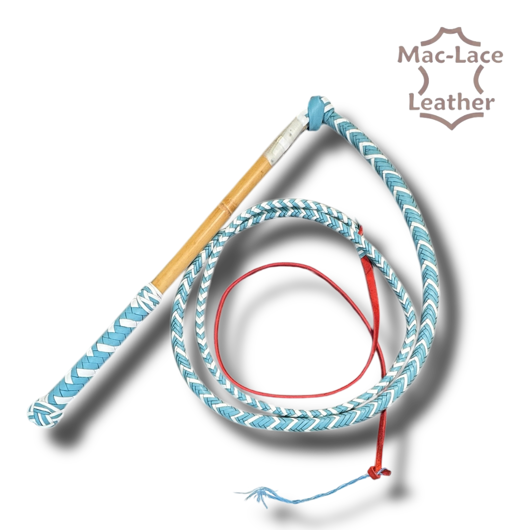 The Old School Australian 16-Plait Twin-Colour Whip in Ski Blue and White is a premium handcrafted whip that reflects the true heritage of Australian whip making. Made with precision and traditional craftsmanship, this 6-foot whip is both visually stunning and built for performance.