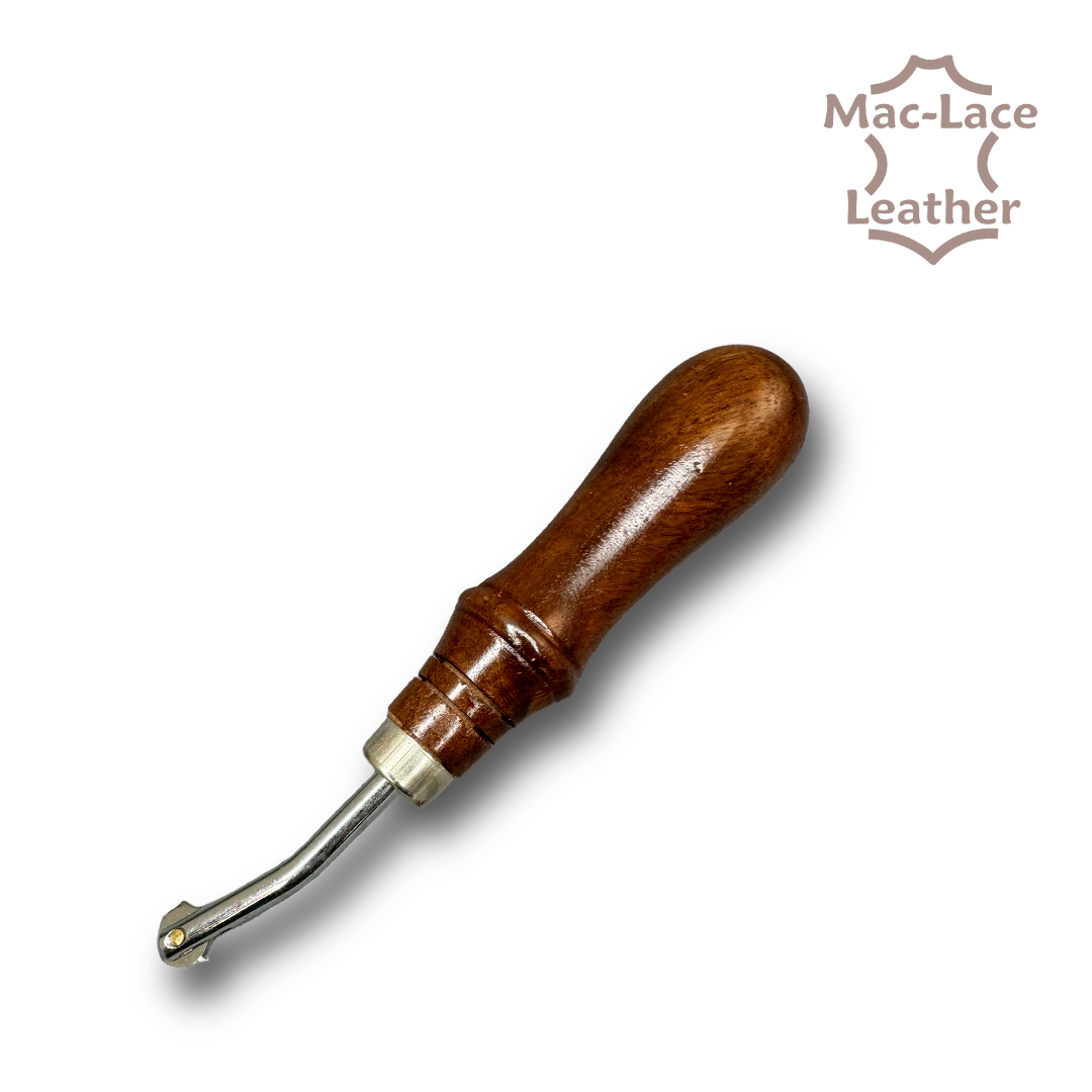 Stitching spacer wheel used to mark out the holes for hand stitching. This tool marks out 5 mm gaps between the holes. After holes are marked they need to be punched through using a leather awl or single stitching chisel.