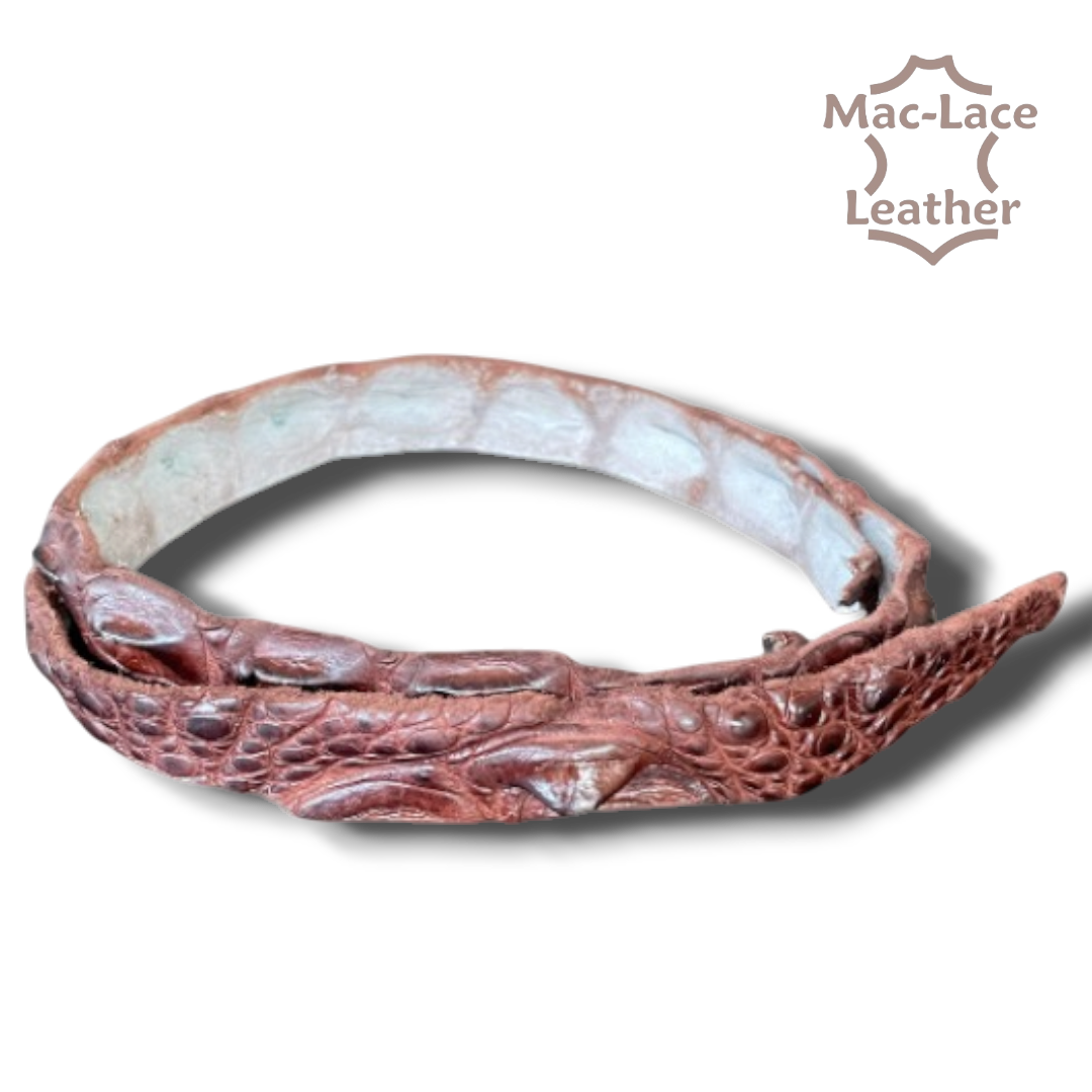 Made with care and precision, each brown crocodile leather hatband is unique, showcasing the natural grain and rugged beauty only genuine crocodile leather can provide. The plain tanned brown finish offers a warm, earthy tone that complements a wide range of hat styles, from classic cowboy hats and outback hats to custom-made fashion pieces.