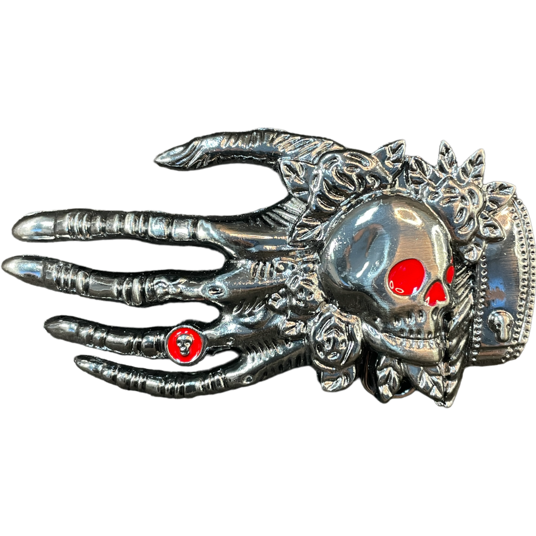 Trophy Buckle – Red eyed Skeleton hand 120*58 mm