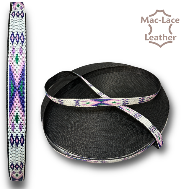For over 3 decades Ivan has been the leader in webbing material of all kinds including our exclusive Hitched Webbing. Our Hitched Webbing has been used by major manufactures all over the world for many years. Ideal for trim work, inlays for belts, hatbands and bracelets just to name a few. We have always offered some styles in smaller strip form until now. Everyone has asked for us to offer as a stock item in bulk manufacture type rolls and we are now doing so. All our best sellers are now available by the roll!