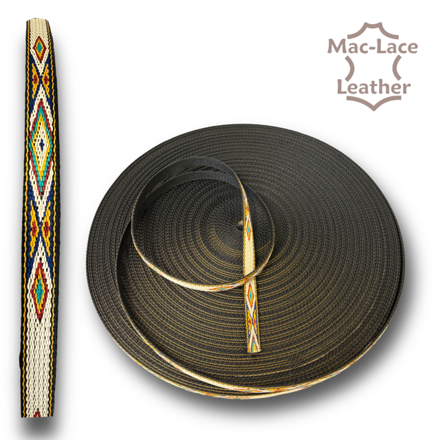 For over 3 decades Ivan has been the leader in webbing material of all kinds including our exclusive Hitched Webbing. Our Hitched Webbing has been used by major manufactures all over the world for many years. Ideal for trim work, inlays for belts, hatbands and bracelets just to name a few. We have always offered some styles in smaller strip form until now. Everyone has asked for us to offer as a stock item in bulk manufacture type rolls and we are now doing so. All our best sellers are now available by the roll!